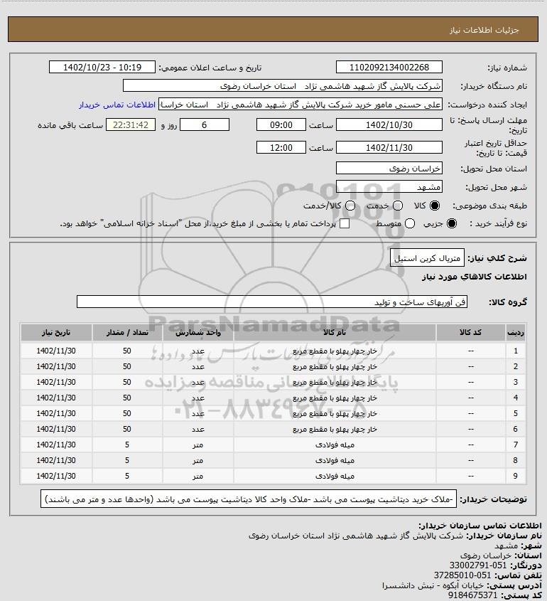 شرح کلی نیاز: متریال کربن استیل