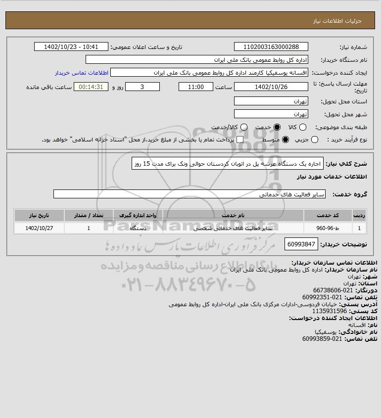 نام دستگاه خریدار:اداره کل روابط عمومی بانک ملی ایران