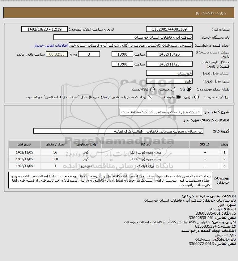 شرح کلی نیاز: اتصالات طبق لیست پیوستی . کد کالا مشابه است