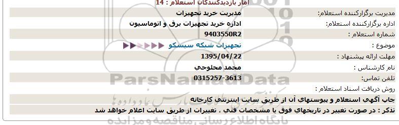 اداره برگزارکننده استعلام: اداره خرید تجهیزات برق و اتوماسیون