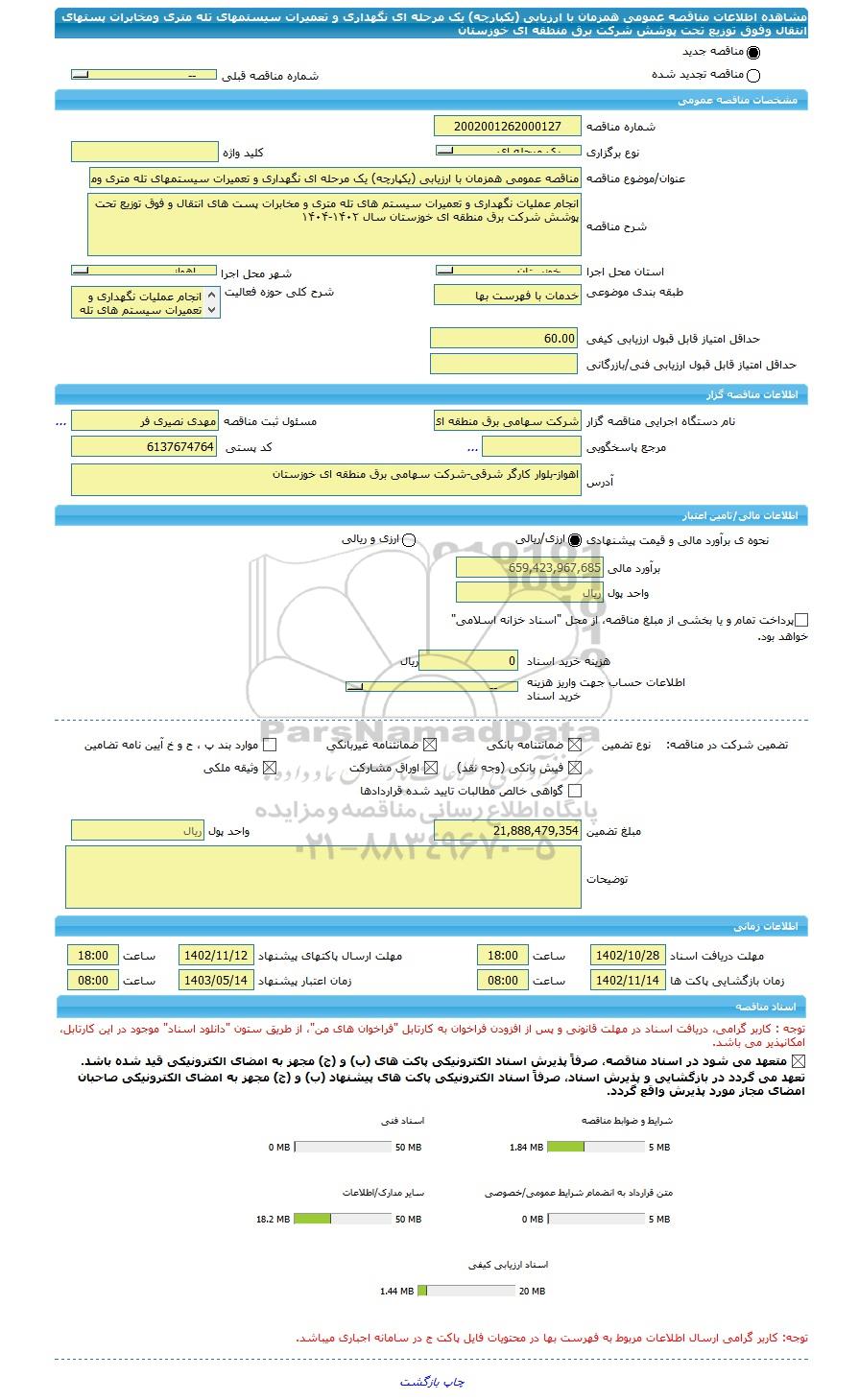 | مبلغ تضمین | 21,888,479,354 | واحد پول | ریال |