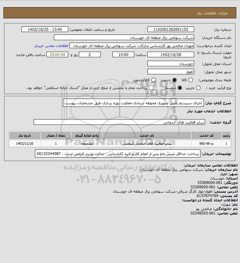 استعلام اجرای سیستم پایش تصویری محوطه ستادی معاونت بهره برداری طبق مشخصات پیوست, استعلام اجرای سیستم پایش تصویری محوطه ستادی معاونت بهره برداری طبق مشخصات پیوست