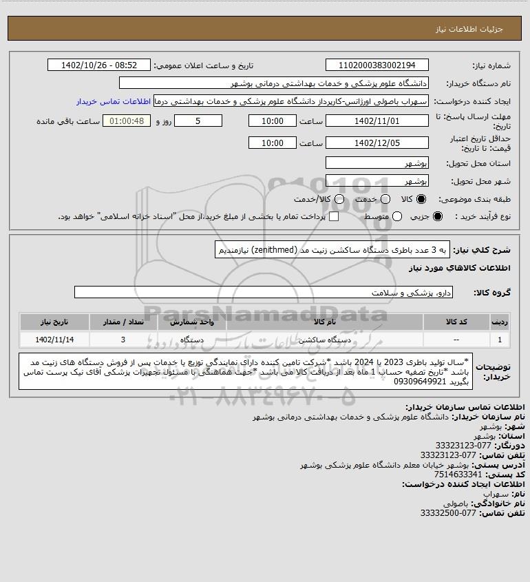 نام دستگاه خریدار:دانشگاه علوم پزشکی و خدمات بهداشتی درمانی بوشهر