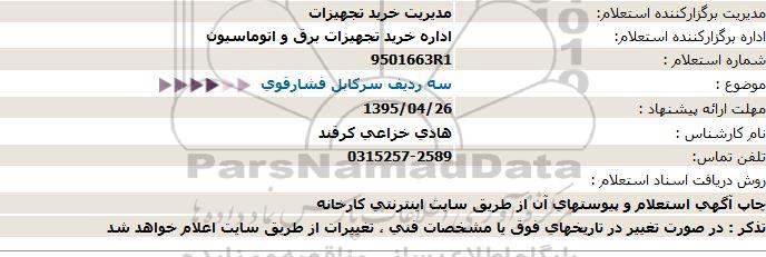 اداره برگزارکننده استعلام: اداره خرید تجهیزات برق و اتوماسیون