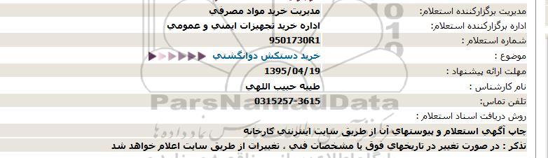 اداره برگزارکننده استعلام:  اداره خرید تجهیزات ایمنی و عمومی