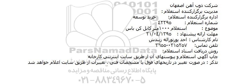 موضوع : استعلام 1000 متر کابل کن باس