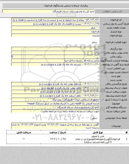 مزایده, مزایده فروش یک قطعه زمین با کاربری تجاری در شهر بندرکنگ قطعه۶, مزایده, مزایده فروش یک قطعه زمین با کاربری تجاری در شهر بندرکنگ قطعه۶