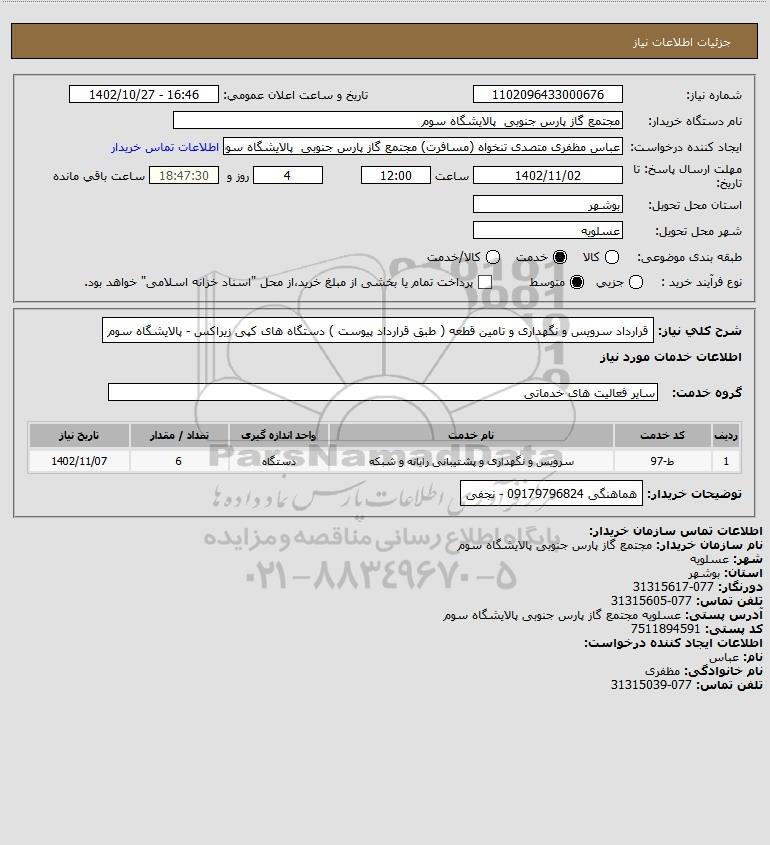 نام دستگاه خریدار:مجتمع گاز پارس جنوبی پالایشگاه سوم