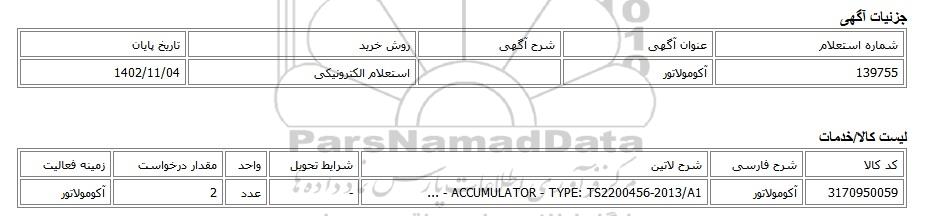 139755آکومولاتوراستعلام الکترونیکی1402/11/04