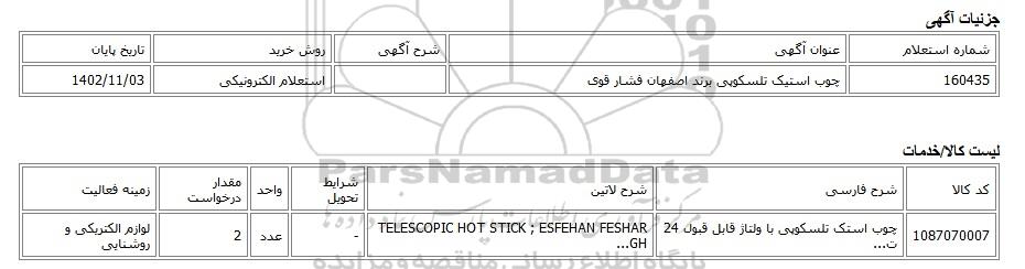 استعلام الکترونیکی، چوب استیک تلسکوپی برند اصفهان فشار قوی, استعلام الکترونیکی، چوب استیک تلسکوپی برند اصفهان فشار قوی