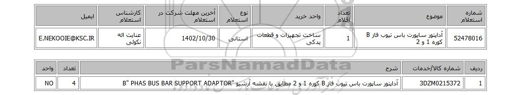 استعلام، آداپتور ساپورت باس تیوب فاز B کوره 1 و 2, استعلام، آداپتور ساپورت باس تیوب فاز B کوره 1 و 2