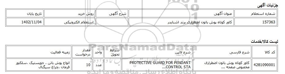 157363کاور کوتاه پوش باتون اضطراری برند اشنایدراستعلام الکترونیکی1402/11/04