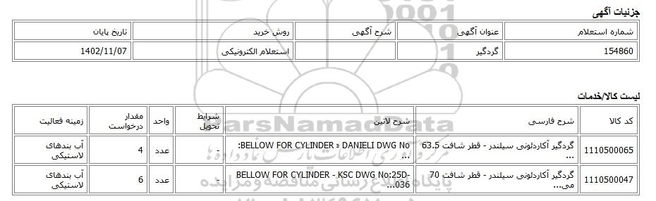 154860گردگیراستعلام الکترونیکی1402/11/07