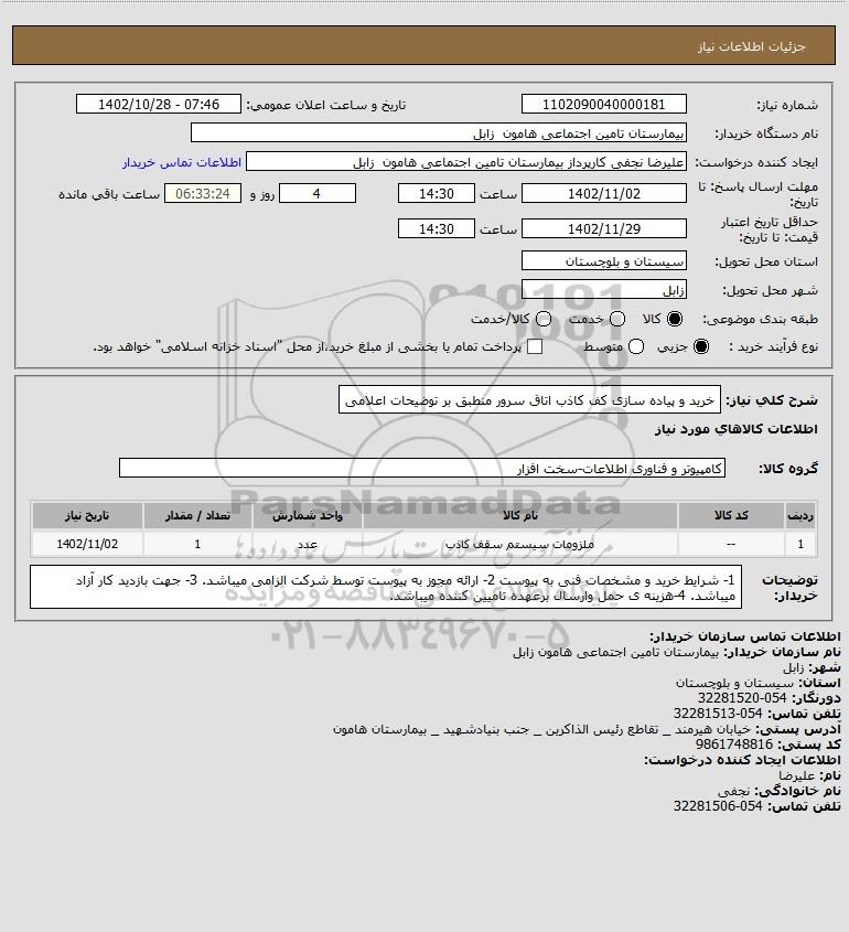 نام دستگاه خریدار:بیمارستان تامین اجتماعی هامون زابل