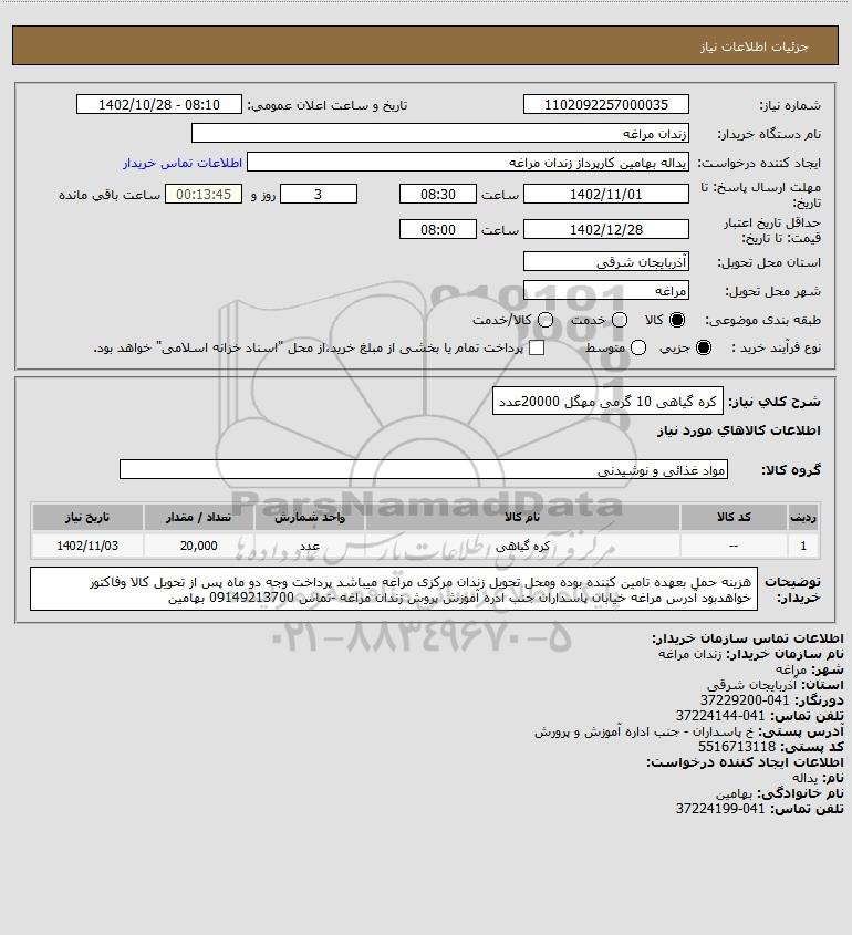 | 1 | -- | کره گیاهی | عدد | 20,000 | 1402/11/03 |