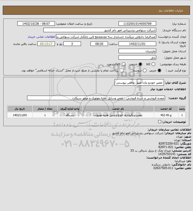 شرح کلی نیاز: تعمیر خودرو پاژن طبق نواقص پیوستی