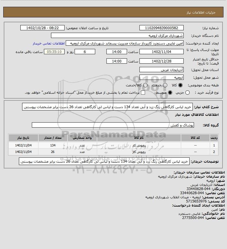 نام دستگاه خریدار:شهرداری مرکزی ارومیه