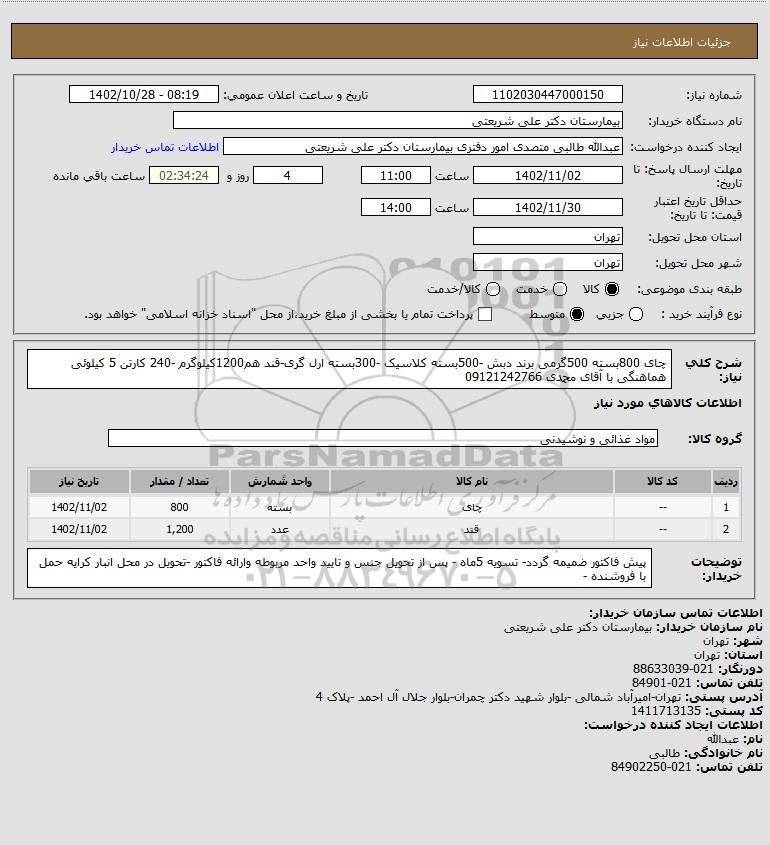 | 1 | -- | چای | بسته | 800 | 1402/11/02 |