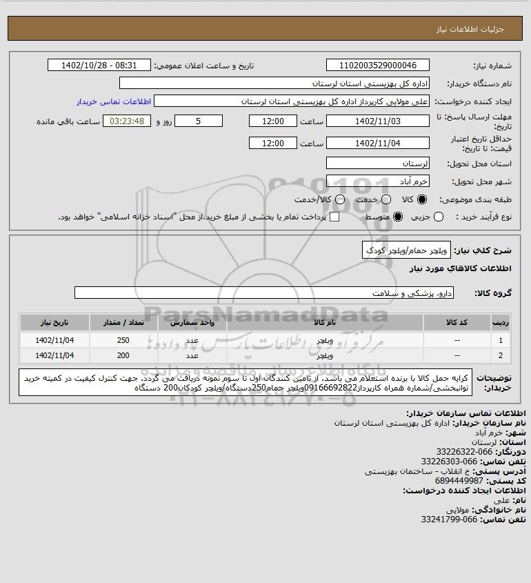 نام دستگاه خریدار:اداره کل بهزیستی استان لرستان