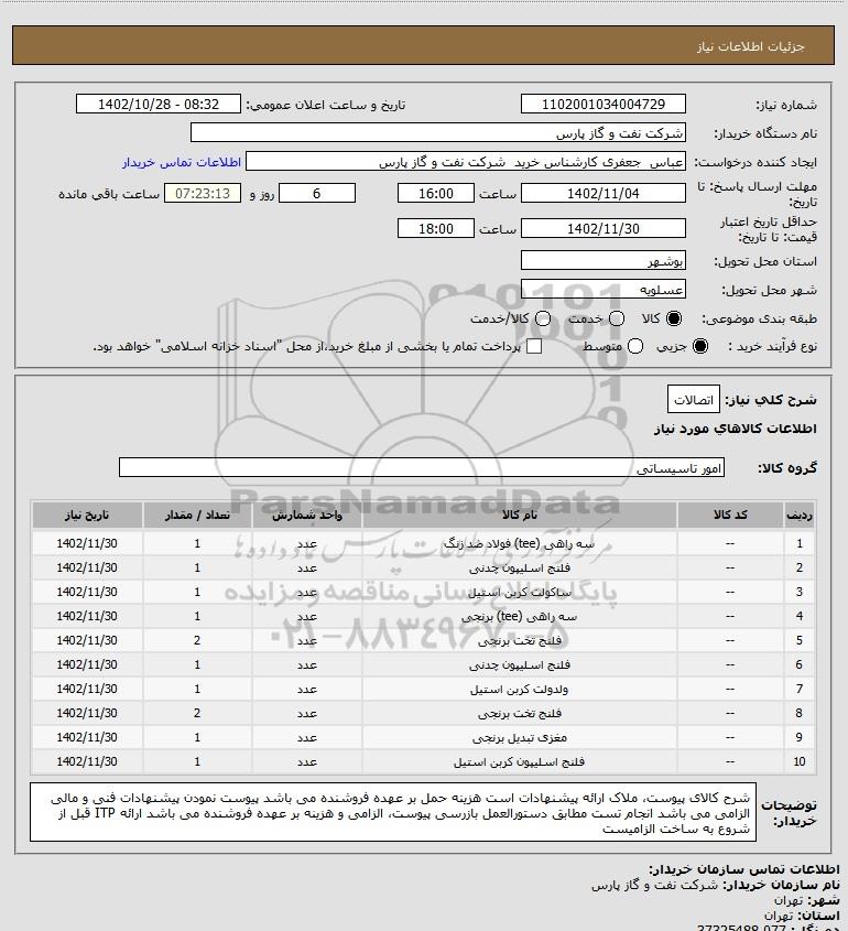 نام دستگاه خریدار:شرکت نفت و گاز پارس