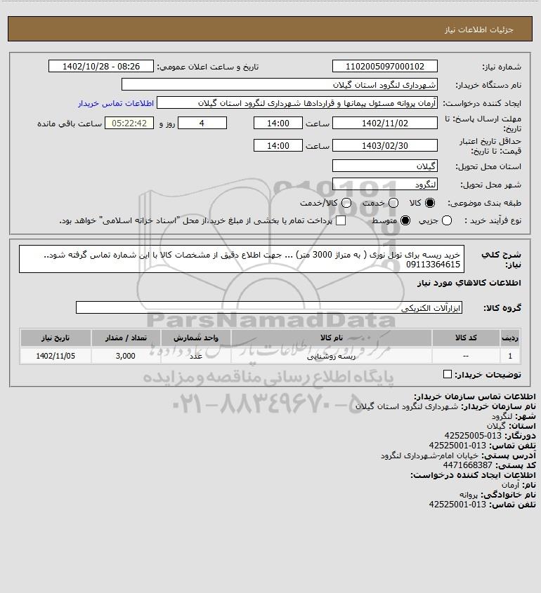 | 1 | -- | ریسه روشنایی | عدد | 3,000 | 1402/11/05 |