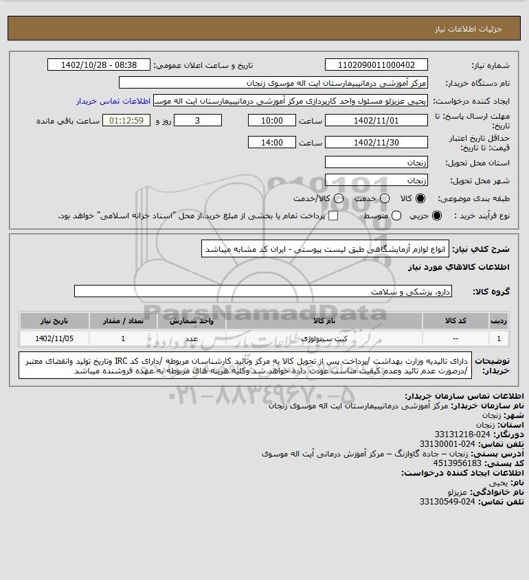| 1 | -- | کیت سیتولوژی | عدد | 1 | 1402/11/05 |