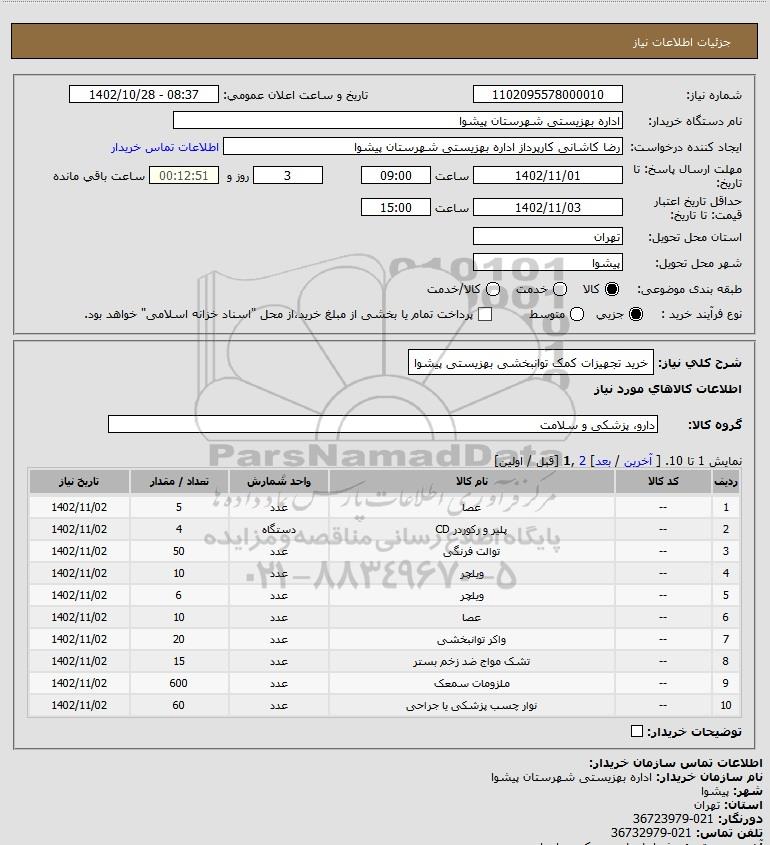شرح کلی نیاز: خرید تجهیزات کمک توانبخشی بهزیستی پیشوا