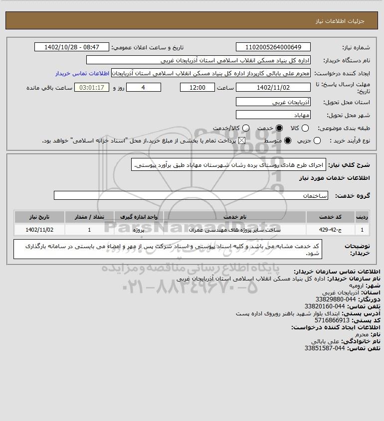 شرح کلی نیاز: اجرای طرح هادی روستای برده رشان شهرستان مهاباد طبق برآورد پیوستی.