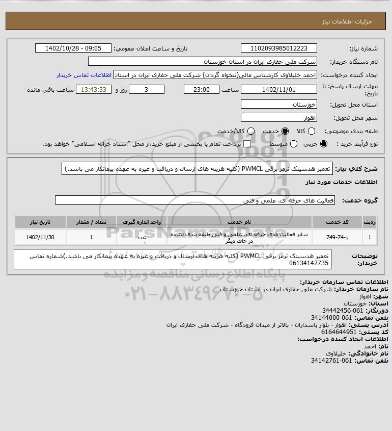 نام دستگاه خریدار:شرکت ملی حفاری ایران در استان خوزستان