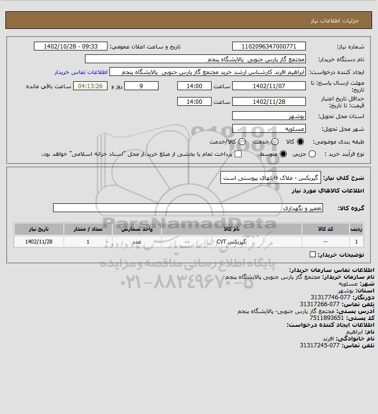| 1 | -- | گیربکس CVT | عدد | 1 | 1402/11/28 |