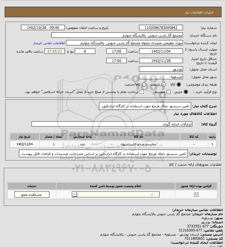 | 1 | -- | دماسنج مرجع کالیبراسیون | عدد | 1 | 1402/11/04 |