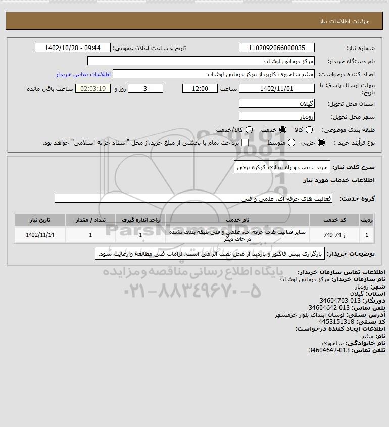 نام دستگاه خریدار:مرکز درمانی لوشان