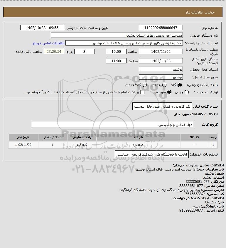 شرح کلی نیاز: پک کادویی و غذایی طبق فایل پیوست
