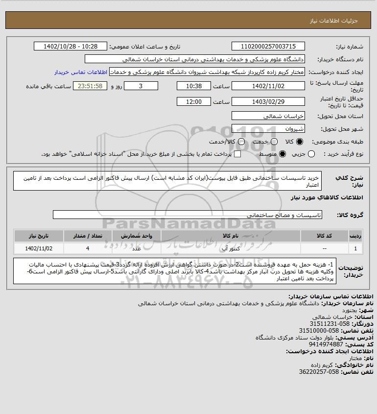 نام دستگاه خریدار:دانشگاه علوم پزشکی و خدمات بهداشتی درمانی استان خراسان شمالی