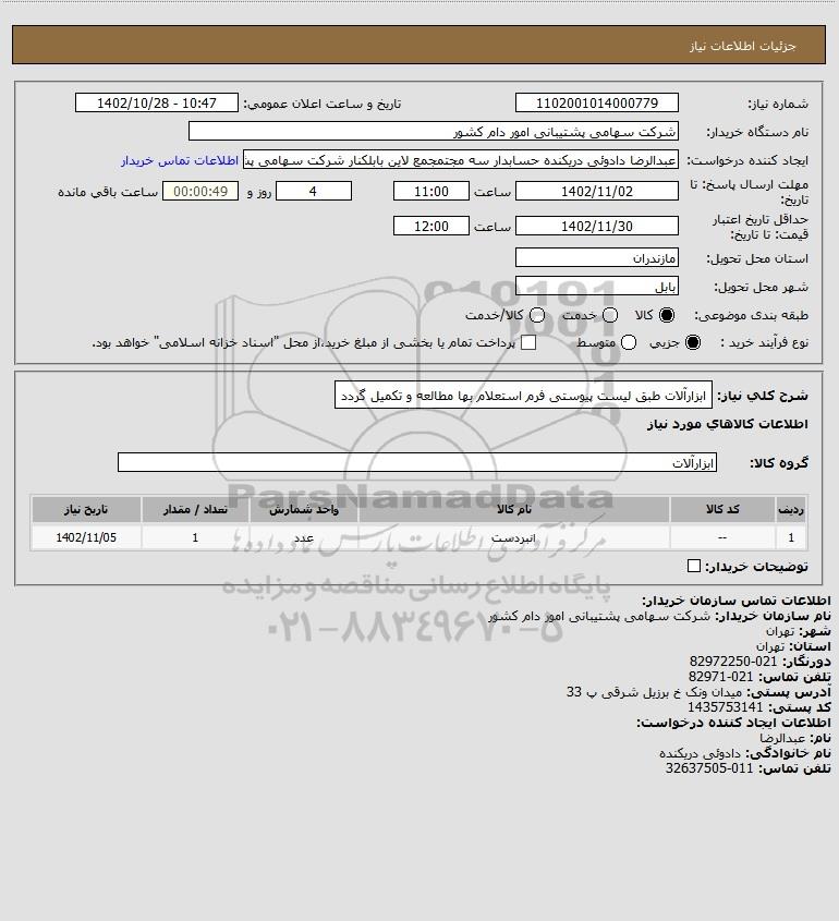 استعلام ابزارآلات طبق لیست پیوستی فرم استعلام بها مطالعه و تکمیل گردد, استعلام ابزارآلات طبق لیست پیوستی فرم استعلام بها مطالعه و تکمیل گردد