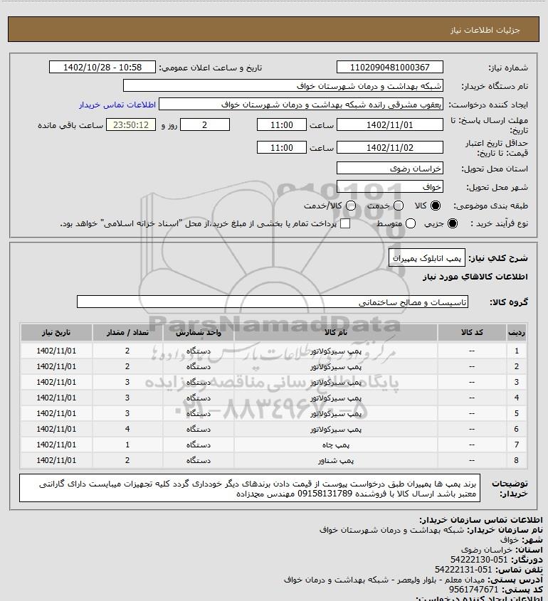 نام دستگاه خریدار:شبکه بهداشت و درمان شهرستان خواف