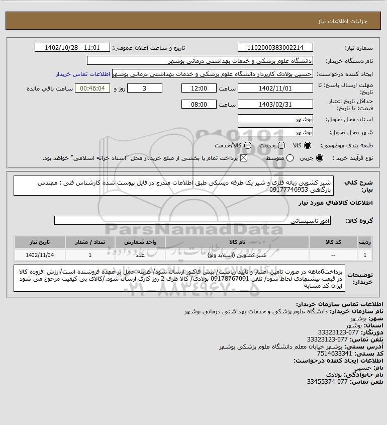 نام دستگاه خریدار:دانشگاه علوم پزشکی و خدمات بهداشتی درمانی بوشهر