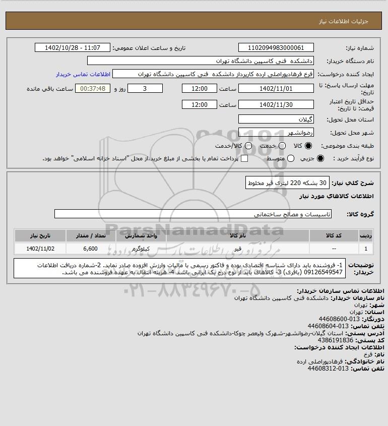 نام دستگاه خریدار:دانشکده فنی کاسپین دانشگاه تهران