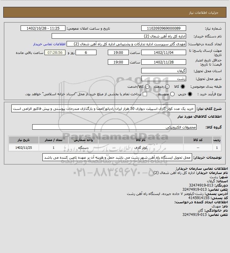 استعلام خرید یک عدد کولر گازی اسپیلت دیواری 30 هزار ایران رادیاتور/امضا و بارگذاری مندرجات پیوستی و پیش فاکتور الزامی است, استعلام خرید یک عدد کولر گازی اسپیلت دیواری 30 هزار ایران رادیاتور/امضا و بارگذاری مندرجات پیوستی و پیش فاکتور الزامی است