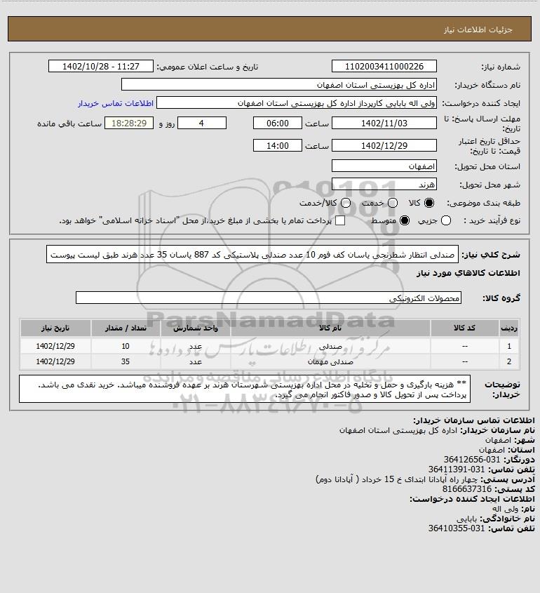 نام دستگاه خریدار:اداره کل بهزیستی استان اصفهان