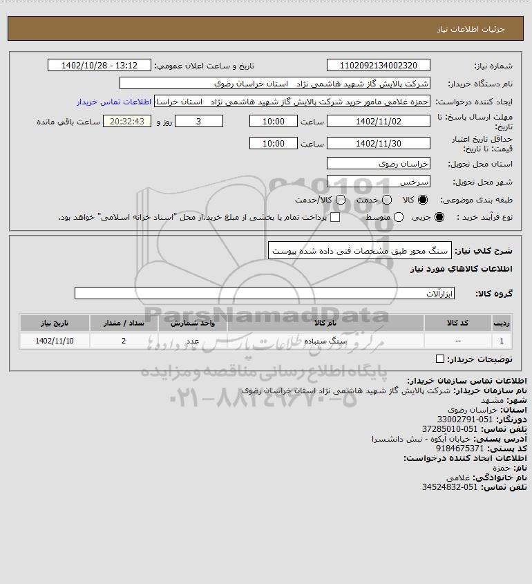 نام دستگاه خریدار:شرکت پالایش گاز شهید هاشمی نژاد استان خراسان رضوی