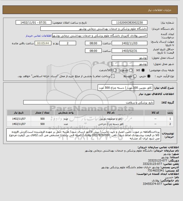 نام دستگاه خریدار:دانشگاه علوم پزشکی و خدمات بهداشتی درمانی بوشهر