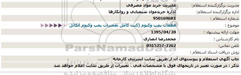 استعلام قطعات پمپ وكیوم 95.4.22, استعلام ، استعلام قطعات پمپ وكیوم95.4.22