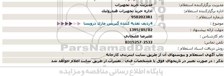 اداره برگزارکننده استعلام: اداره خرید تجهیزات هیدرولیک