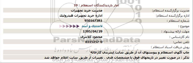 اداره برگزارکننده استعلام: اداره خرید تجهیزات هیدرولیک