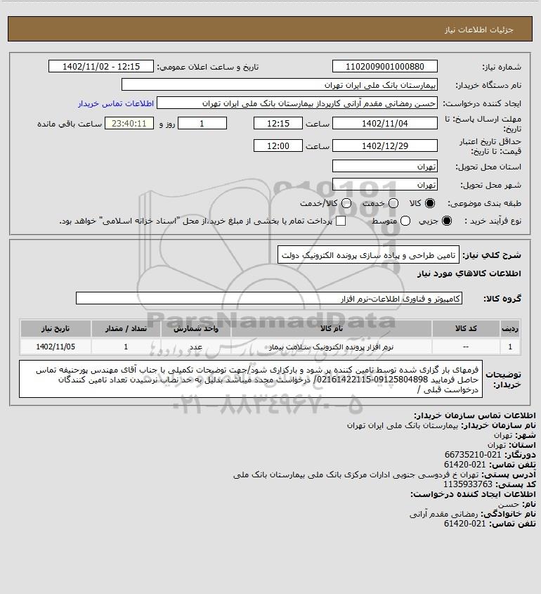 شرح کلی نیاز: تامین طراحی و پیاده سازی پرونده الکترونیک دولت