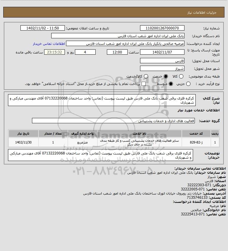 نام دستگاه خریدار:بانک ملی ایران اداره امور شعب استان فارس