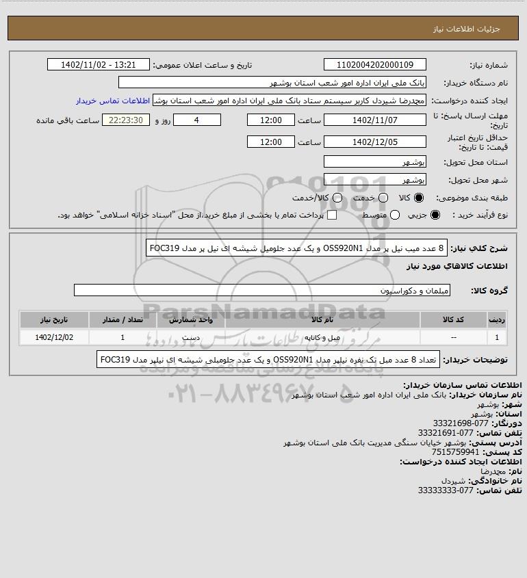 نام دستگاه خریدار:بانک ملی ایران اداره امور شعب استان بوشهر