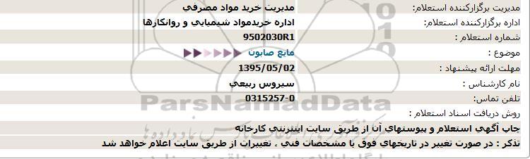 اداره برگزارکننده استعلام:  اداره خريدمواد شيميايی و روانكارها