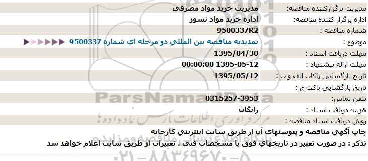 مدیریت برگزارکننده مناقصه:     مدیریت خرید مواد مصرفی
